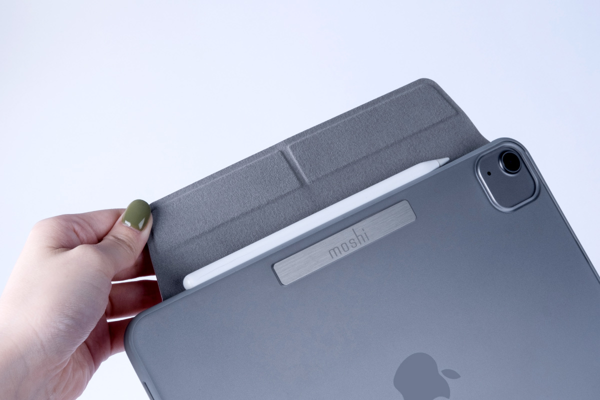 The front magnetic closure not only keeps VersaCover's screen cover securely closed when not in use, but also encases your Apple Pencil to offer extra protection and prevent loss while charging.