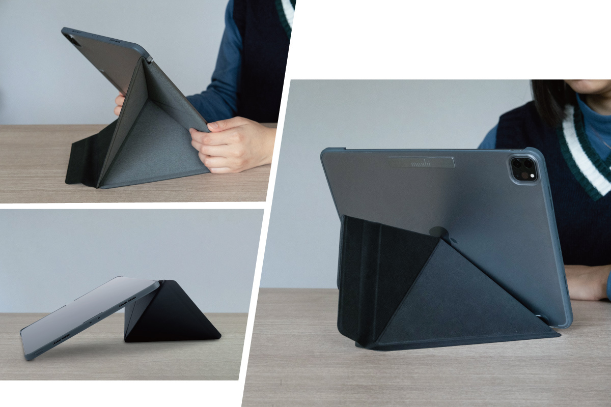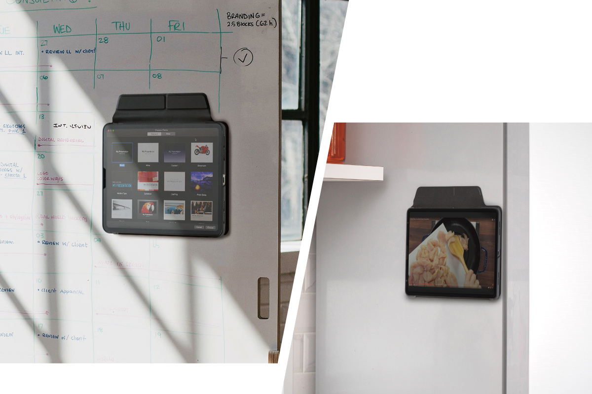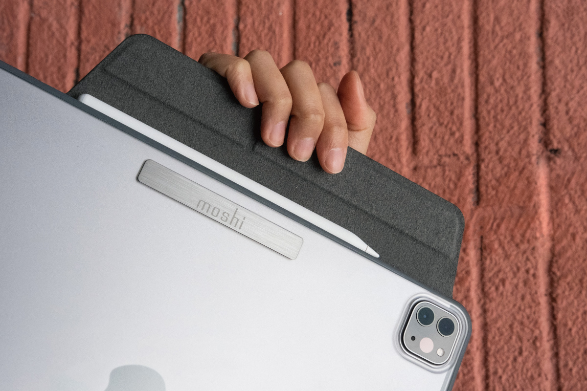 An origami-inspired case providing 360° protection for iPad and supporting multiple viewing angles. The microfiber-lined cover with magnetic closure protects the touchscreen and Apple Pencil and also mounts to metal surfaces for hands-free viewing.