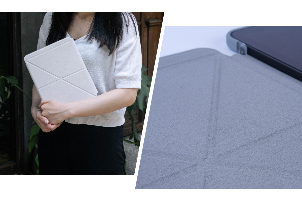 An origami-inspired case providing 360° protection for iPad and supporting multiple viewing angles. The microfiber-lined cover with magnetic closure protects the touchscreen and Apple Pencil and also mounts to metal surfaces for hands-free viewing.